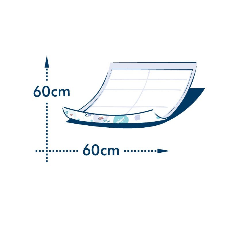 Кольорова сторона з написом Happy та малюнками рибок - це ізоляційна плівка, яка захищає постіль від намокання. Особлива структура плівки запобігає ковзанню пелюшки по поверхні.