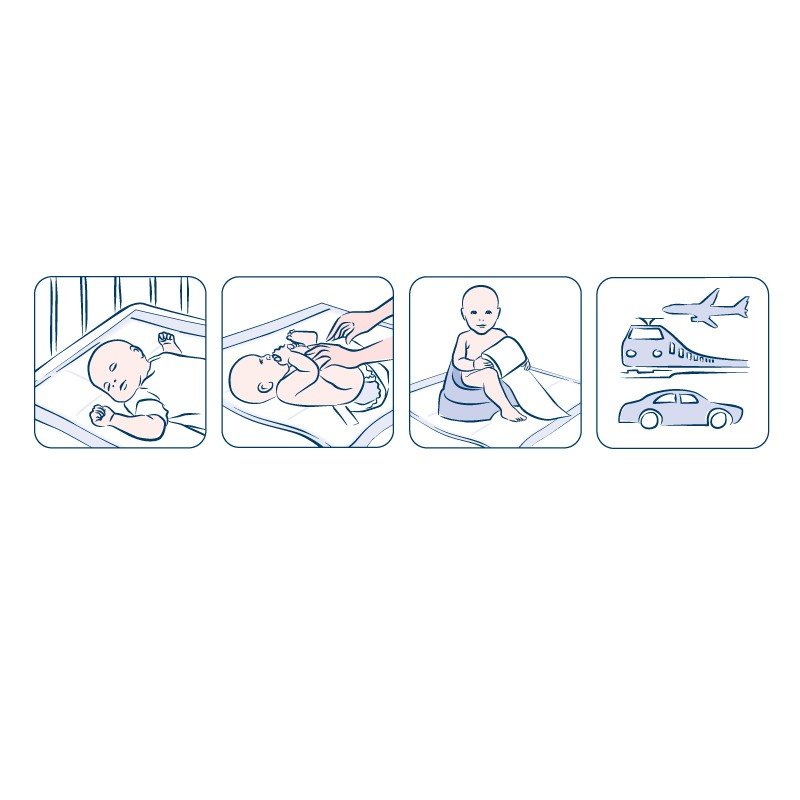ідеальний захист під час заміни підгузка, особливо під час прогулянки і подорожей, а також можуть використовуватися у ліжечку дитини, як додатковий захист постільної білизни.