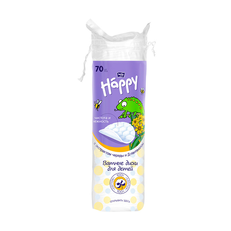 Подушечки из ваты для детей BELLA Baby Happy с экстрактом череды и Д-пантенолом 70 шт.